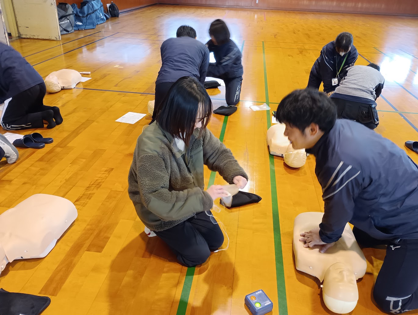 介護予防教室や子どものスポーツ教室、施設利用者などお客様の緊急時に備えるため、毎年実施しています。