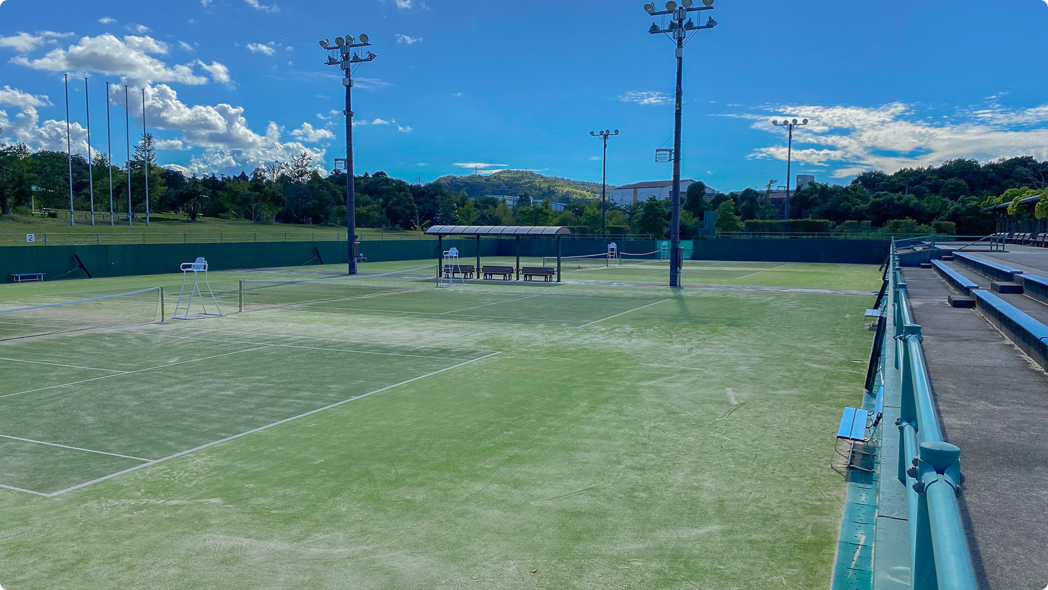 16面の人工芝コートでナイター設備を完備しています。